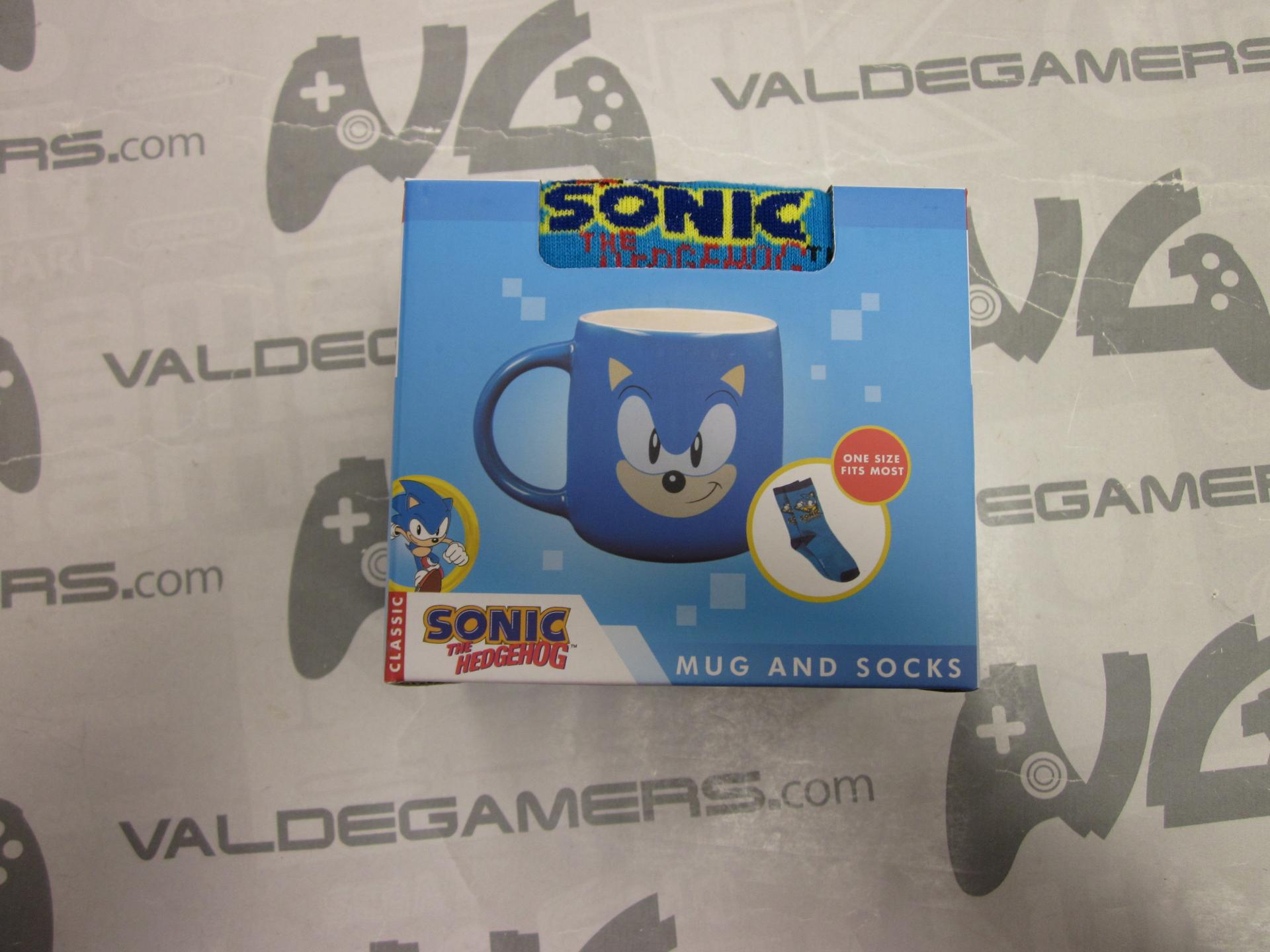 taza de sonic de 460ml aprox y calcetines de talla unica