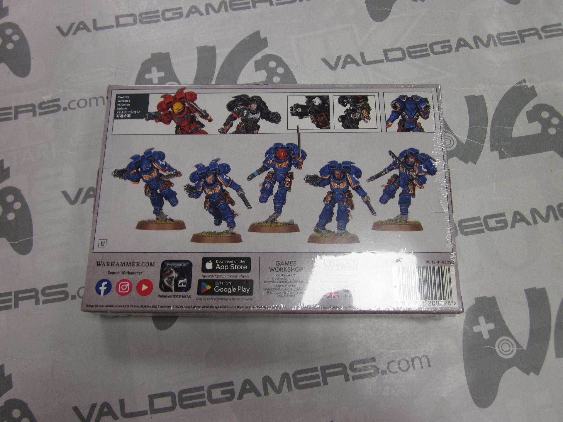 El kit contiene 108 componentes de plástico, cinco peanas Citadel redondas de 32 mm y una hoja de calcomanías de Infantería de Marines Espaciales. Las miniaturas se suministran sin montar ni pintar. Recomendamos usar pegamento Citadel Plastic Glue y pinturas Citadel Colour.